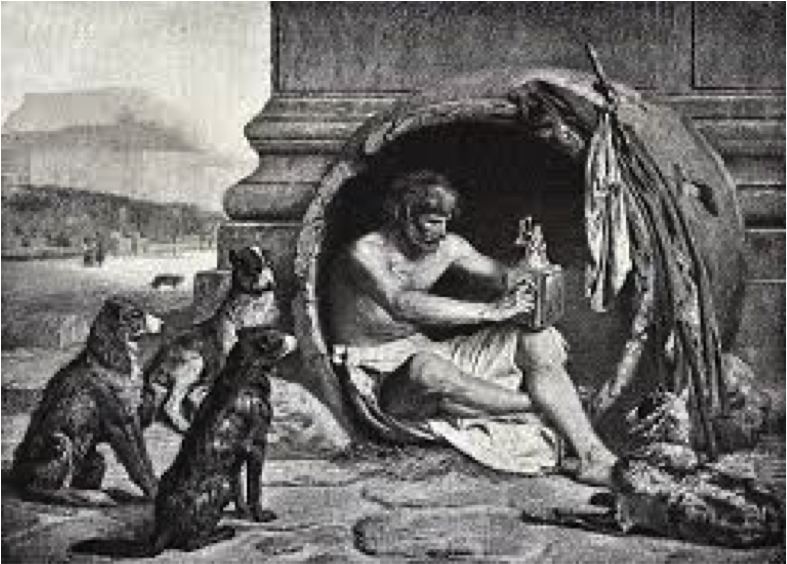 Şu halimizi görse, Diogenes ne derdi acaba? Çıplak ayakla dolaşan Sinop doğumlu filozof. Fıçıda yaşayan. Elinde fenerle sokakta “adam“ arayan. Yine böyle sokak sokak dolaşırken, bir gün bir çeşmeden suyu avuçlarıyla içen bir çocuğa rastlar filozof. Bir an durur. Şaşırır. “Diogenes” diye mırıldanır kendi kendine, “aldın mı boyunun ölçüsünü!…Yazıklar olsun sana!..”. Sonra da heybesinden, her gün kullandığı ahşap maşrapayı çıkarıp, muzaffer bir gülümsemeyle uzağa fırlatır. Mutludur. Çünkü, bir yükten daha kurtulmuştur. Eşya bir yüktür Diogenes için. Elleriyle su içmek varken, maşrapa ayak bağı değil de nedir?