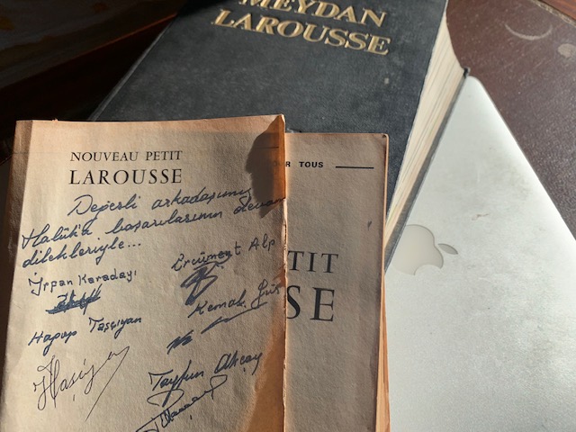 Meydan Larus benim kitaplığımda mevcut. Hem de baş köşede. 12 cilt. Kalın, sert siyah kapaklı. Bana ciddi ciddi bakarlar. “Biz hep buradayız. Yardıma hazırız!” derler. Ben de onları. İhtiyacım olsa da olmasa da. Zaman zaman ziyaret ederim. İlk Larus’ umu. Lisede iken kullanırdım. “Petit Larousse”. Sanırım bir doğum günümdü. Mahalle arkadaşlarım hediye etmişti. Fransız dilinde eğitim gördüğümden… Önce bunu bir düşünün. Hediyeyi verenleri düşünün! Bir yakınım. Bir akrabam. Bir büyüğüm değil! Onlar. Arsalarda. Beraber top oynadığım. Kırlarda. Birlikte kuzukulağı topladığım. Sokak aralarında yan yana koşuşturup terlediğim. Mahalle arkadaşlarım! Ayrıca da. Hediyeyi düşünün! Bir tüketim malzemesi. Bir oyun aracı değil. Bir Larus verdiler! Mesela bir gitar vermis olsalardı. Belki de. Önümde. Bir müzik yolu açılır. Bir gitarist olurdum. Ama değil! Onlar. Evrensel bir Larus. Bir bilgi demeti verdiler bana. Bunları düşünüp. Bugünlerden bakınca. Ne de tuhaf değil mi?.. İşte. Eski Türkiyenin eski mahallesi. Eski arkadaşları. Böyle bir yer!