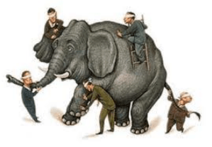 Konumuz Fil. Tamam da. Buraya nereden geldik? Nereden mi. O. Çok konuşulan. Hiç anlaşılmayan. Kelimenin tanımından. Devam edelim o zaman. Bakalım nereye varacak. … Bizim fil şaşkın. Etrafında bir takım adamlar. Kendisine dokunup duruyorlar. Şaşkın. Kendi kendine soruyor. “Ne yapmak istiyor bu adamlar?” diye. Aslında kötü bir niyetleri yok. Ama. Fil nereden bilsin? Nasıl anlasın? Bu adamlar kör. Göremiyorlar yani. Yedi kör adam. Hikayeyi bilirsiniz. Bir filin etrafındalar. Karşılarında bir şey var. Bir “şey”. Herbiri dokunarak. Bu şey’in. Ne olduğunu anlamaya çalışıyorlar. Hepsi bu!